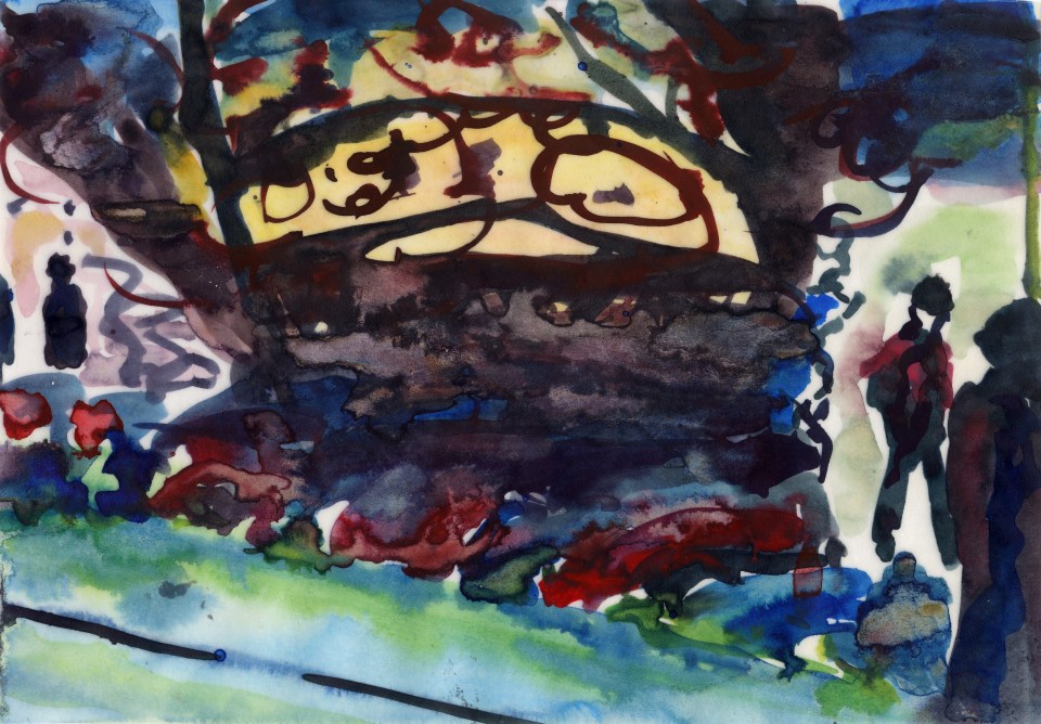 Frame 11. ← Previous Next → Frame 11, 2015. Ink on tracing paper, 13 x 18.4 cm. Photograph © Ceri Thomson 2015.