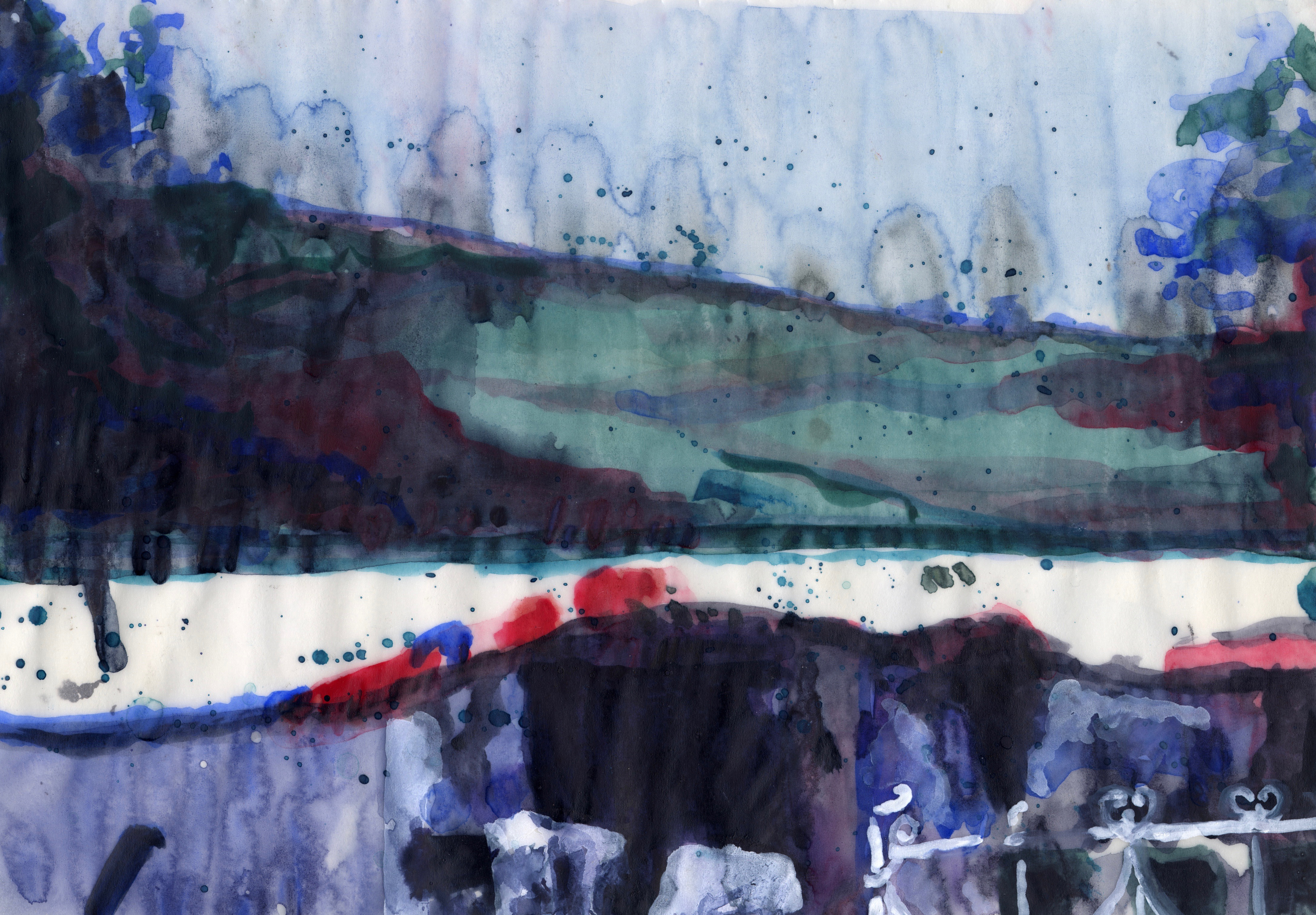 Frame 15. ← Previous Next → Frame 15, 2015. Watercolour and gouache on tracing paper, 13 x 18.5 cm. Photograph © Ceri Thomson 2015.